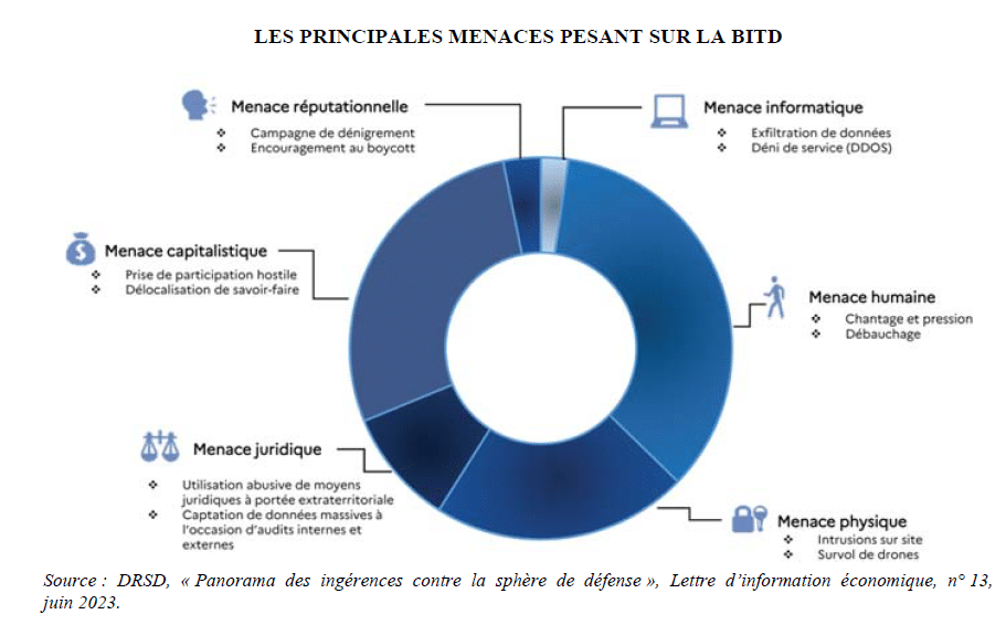 La France est confrontée à une intensification sans précédent de la guerre économique. Cette menace vise particulièrement la base industrielle et technologique de défense (BITD) et cherche à capter, contrôler et s’approprier des richesses pour accroître la puissance des compétiteurs stratégiques de la France.